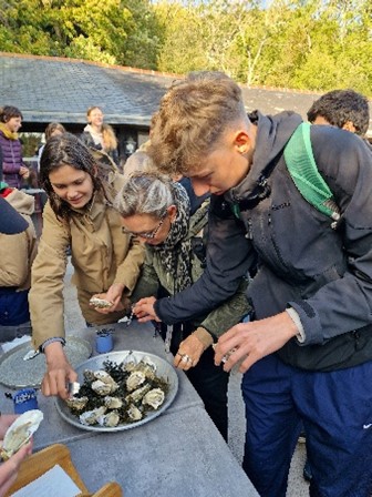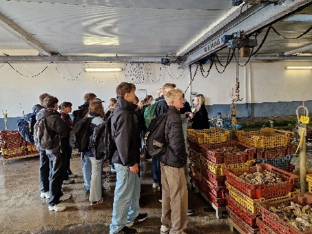Am Dienstag, den 14.10.25, trafen wir uns zum zweiten großen Ausflugstag in der Schule wieder. Zunächst fuhren wir zu einer Austernfarm in Cancale, wo wir durch Film und Führung über die Austernzucht/-fischerei informiert wurden und auch eine Auster probieren durften.