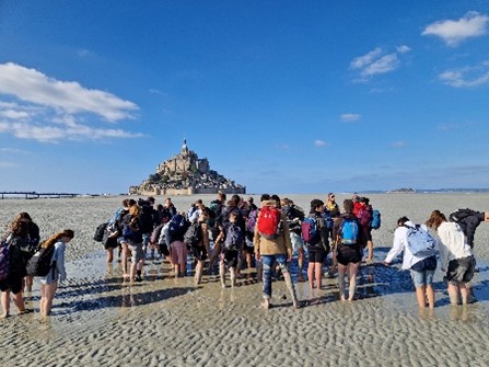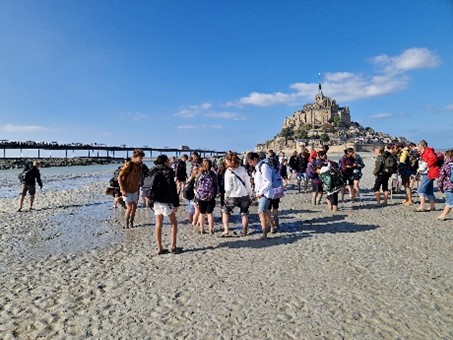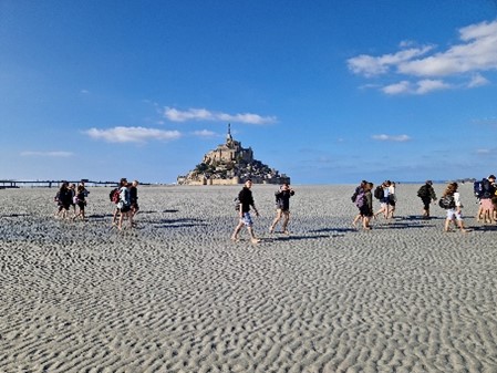 Im Anschluss fuhren wir weiter zum Mont St. Michel. Hier konnten die Jugendlichen den Mont mit seinen vielen Souvenirläden besichtigen, bevor wir dann gemeinsam eine Wattwanderung rund um den Mont unternahmen. Besonders viel Vergnügen hatten die Schüler beim Hüpfen in den „sables mouvants“.