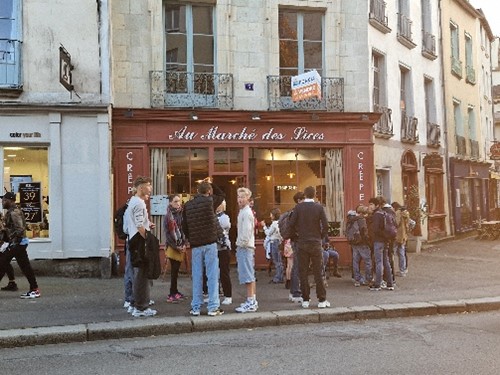 Am Wochenende (11./12.10.25) unternahmen unsere SchülerInnen Unterschiedliches in ihren Gastfamilien: einige besuchten Familienangehörige, andere machten Ausflüge in andere Städte/Dörfer oder an Strände. Sie trafen sich in kleineren Gruppen im Park, organisierten Partys zu Hause, machten Einkäufe in der Altstadt von Rennes oder im großen Shopping-Center „Alma“ usw. |