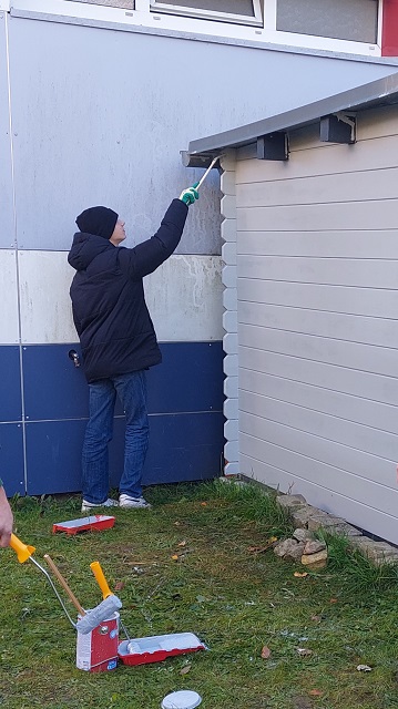 - den Geräteschuppen abgeschliffen und gestrichen.