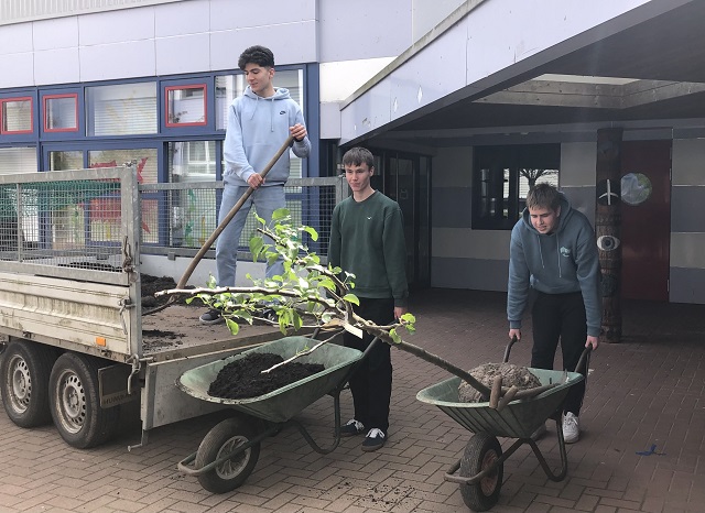 Schüler der GemSKro pflanzen Birnbaum im Schulgarten - Spende von Rotary Kiel-Düsternbrook macht’s möglich