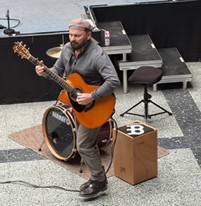 Martin Röttger aus Lübeck ist ein gefragter Cajonspieler in der Bluesszene und gibt professionellen Unterricht online, und in den Städten der Republik. Martin gab den Schülerinnen und Schüler Informationen aus erster Hand über die Geschichte und Spielweise des Cajons weiter.