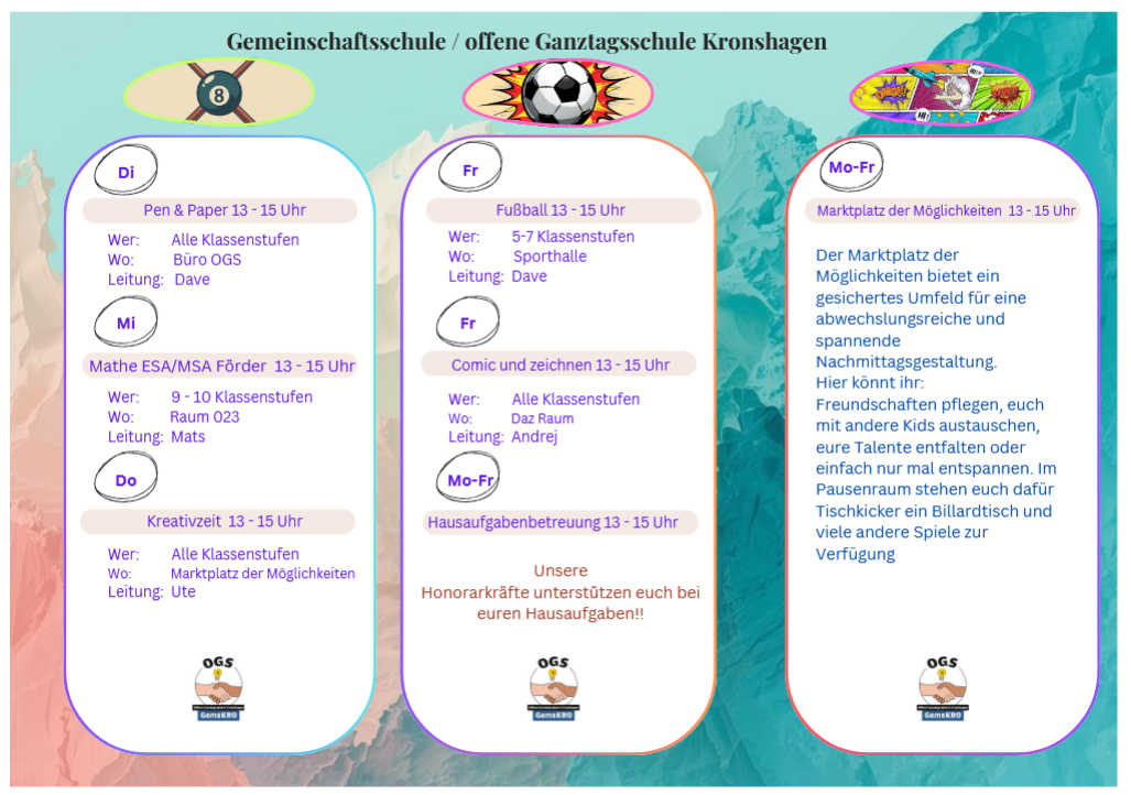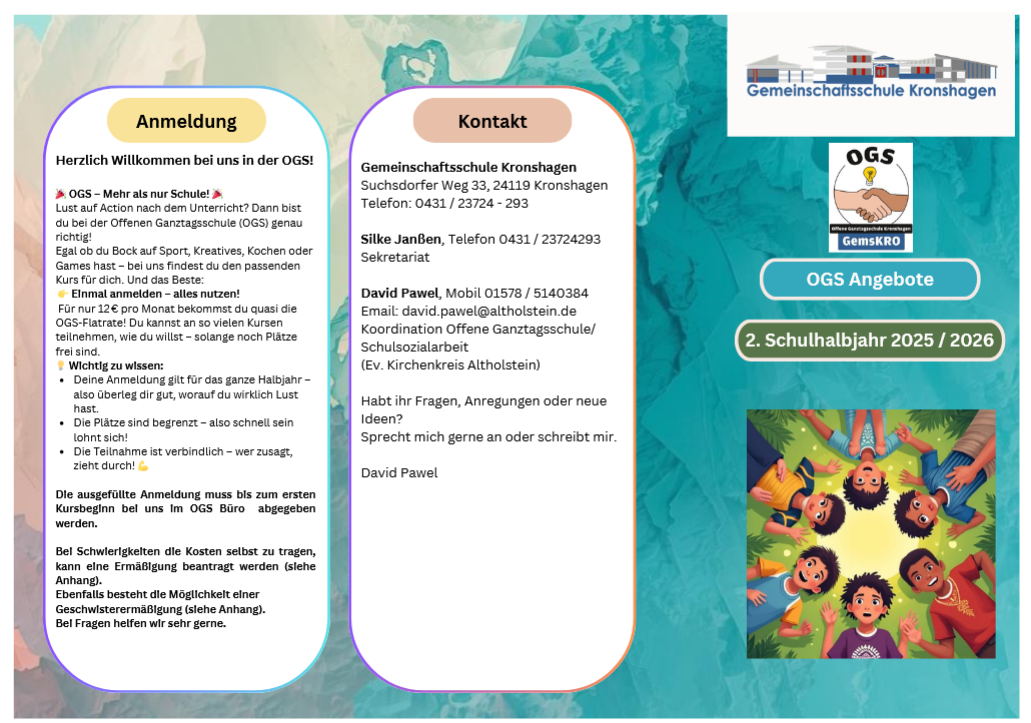 Hier die Angebote der Offenen Ganztagsschule für das 2. Halbjahr 2025/2026